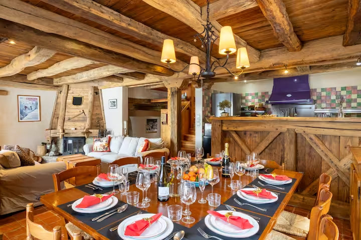 It’s in a great location, very close to Grand Montet (a 1 minute drive). The chalet is large enough to comfortably house 3 families with 2 kids each (possibly more), whilst still coming across as very cosy. There are amazing, unobstructed views of the mountains from most rooms.